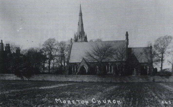 Christchurch Moreton The church was built in 1863 and designed by Messrs. Cuningham & Audsley at a cost of 8000 pounds which included the school. It was paid for by William Innman of Upton Manor whom is laid to rest in the grounds of the church. His head stone can still be found. The tower is said to be just over 100 feet high making it one of the most impressive in Wirral. |