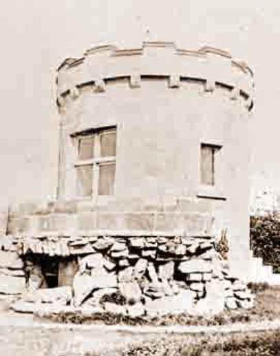 | At the south end of the lake, now integrated into a modern house, is a small circular sandstone tower. The tower is known as 'Tell's Tower'. It was built by Cumming Mcdona M.P in memory of a remarkable St. Bernhard dog for whom he had great affection for. Cumming Macdona lived at Hilbre House in West Kirby with his dog. After the animal died in 1871 he built the tower in the corner of his garden and buried it underneath with a plaque and small inscription as a dedication to his beloved pet. I am still looking for further information on this and i am still hoping to get a photograph of the house which it has been built into today. If you are able to provide me with either of these please contact me at oldwirral@yahoo.co.uk |
