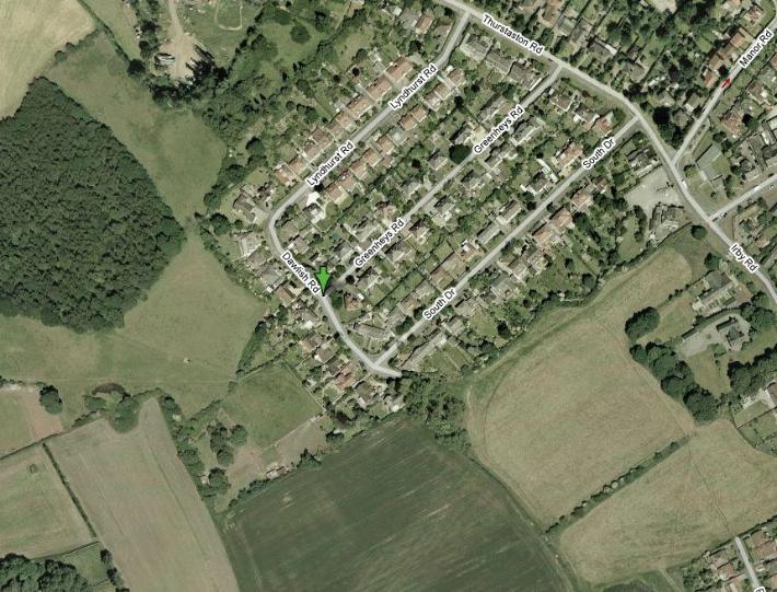 The above picture shows the aerial view of the suspected Leper House Site. As you can see in the middle the road name reads Green Heys which is the known name of the field in which the Leper House was.