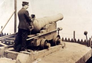 This service was performed from 1867 until July 18th 1969, apart from a break during the Second World War. An extra firing heralded the start of the 20th century. An attempt was made to scrap the time signal in 1932, partly because it was no longer necessary, due to the advent of radio, but also because of the cost of maintenance of the gun, said to be approximately one hundred pounds a year. There was a public outcry at the prospect of the ending of this tradition, so the War Office provided a new cannon, a 32 pounder from Woolwich Arsenal, which arrived on April 26th 1933. The old cannon was on display in the grounds of Bidston Observatory for many years.