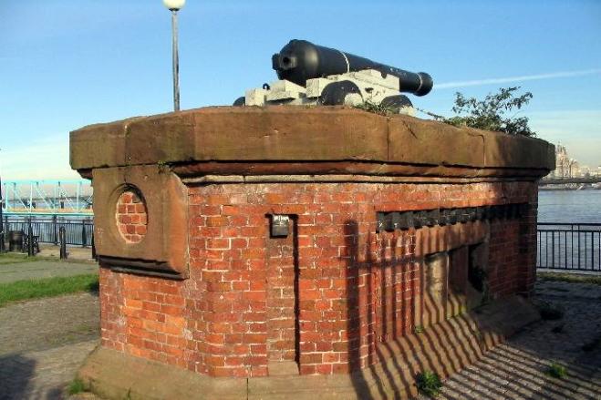 A cannon at Morpeth Dock, Birkenhead was fired remotely from Bidston Observatory at one o'clock each working day, triggered electrically by a specially adapted Robert Molyneux clock. On the dockside, the cannon, a relic of the Crimean wars, was loaded, and at 12.30pm each working day a member of staff tested the connection between the clock at the Observatory and the cannon. At one second to one o'clock the switch would be thrown at the Observatory, the firing being triggered by the next swing of the clock's pendulum. On clear days the flash could be spotted from across the Mersey.