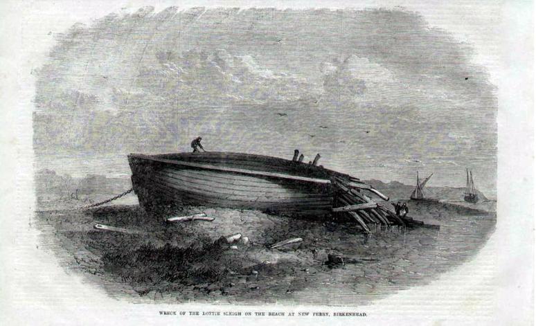 The Wreck of the Lottie Sleigh on New Ferry beach - Published in a London Newspaper 1864.